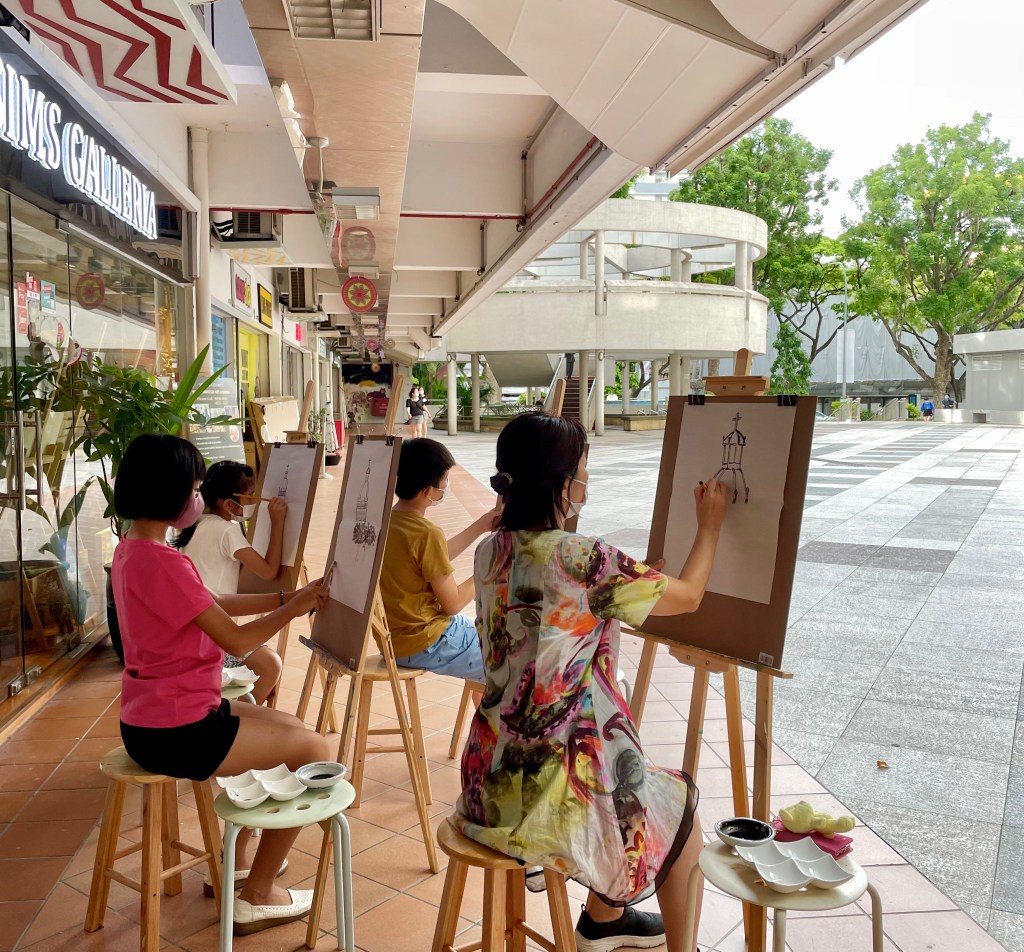 We conducted our Ink Painting class with a tiny twist, we gave our students the chance to practice their direct observation skills and conducted an outdoor class! Our students drew St. Joseph’s Church, an old building, with our urban skyscrapers peaking over it.