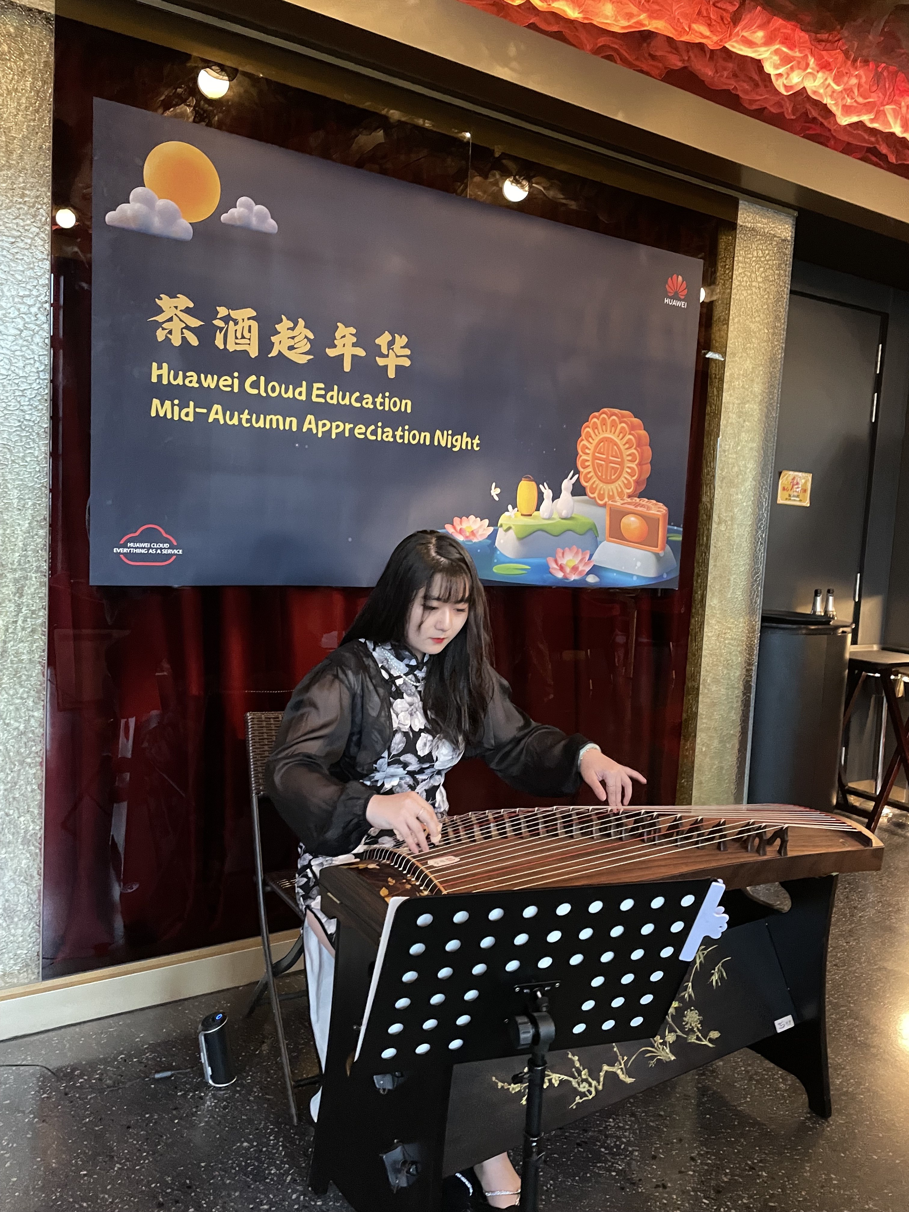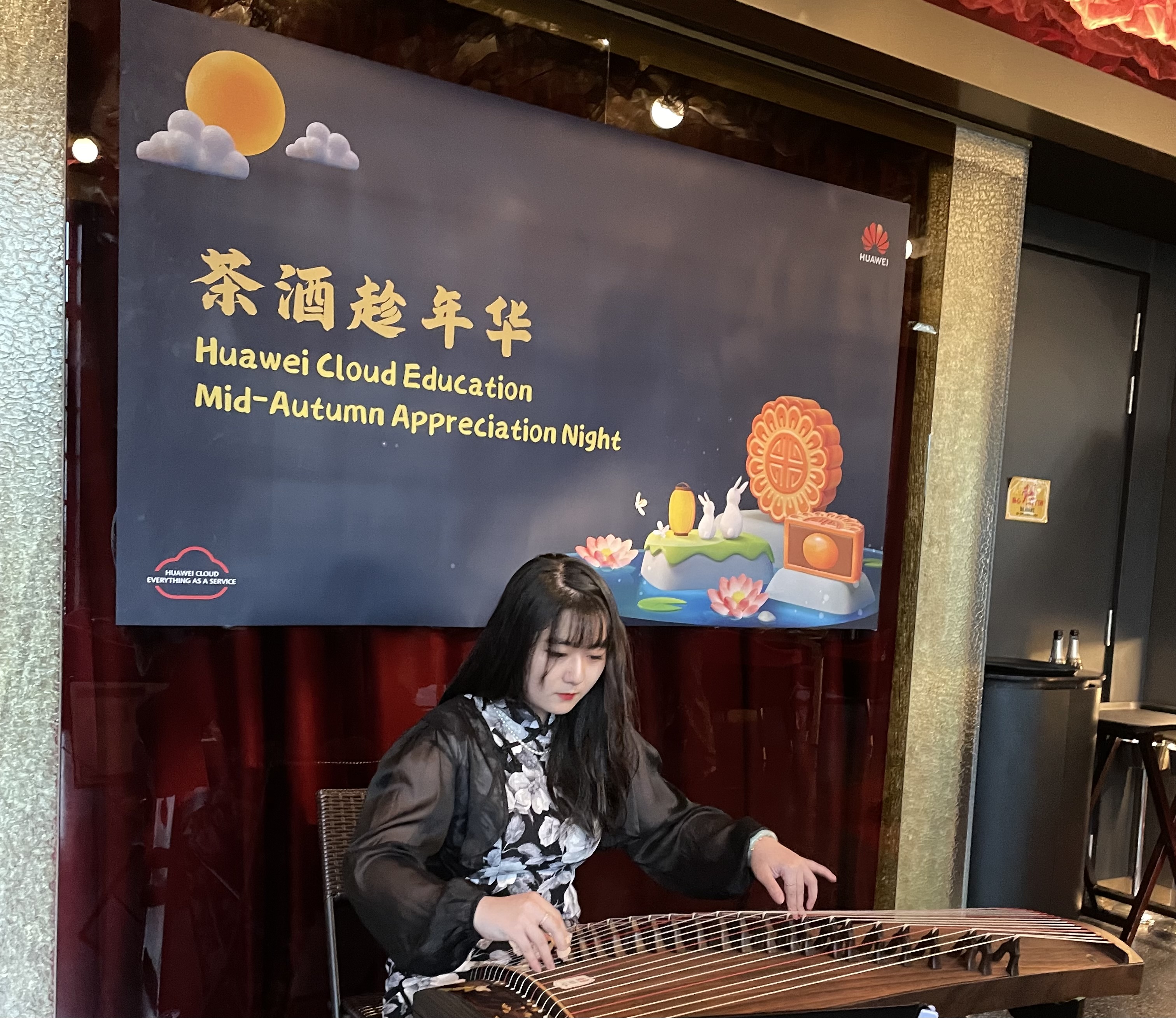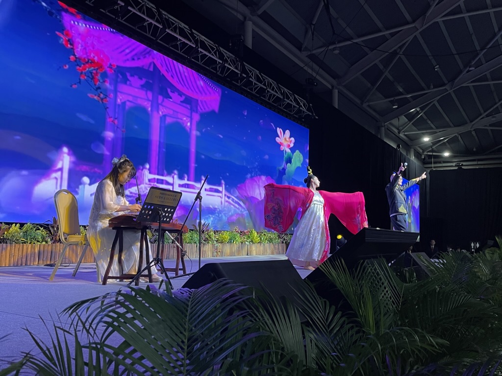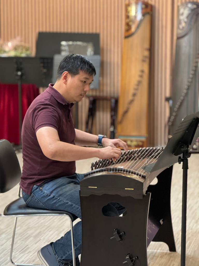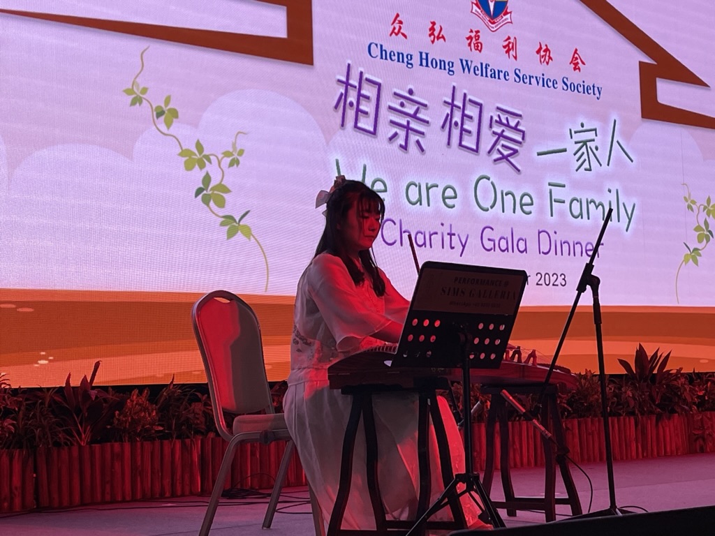 Our talented guzheng musician performing the magnificent piece “沧海一声笑” with a group of artists at the Cheng Hong Welfare Service Society Charity Gala Dinner graced by Minister Ong Ye Kung.