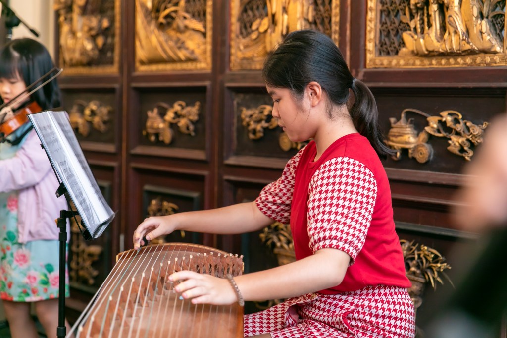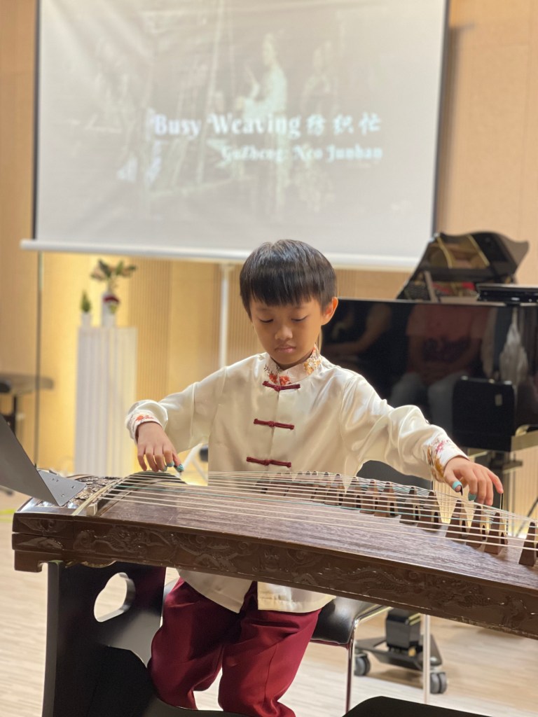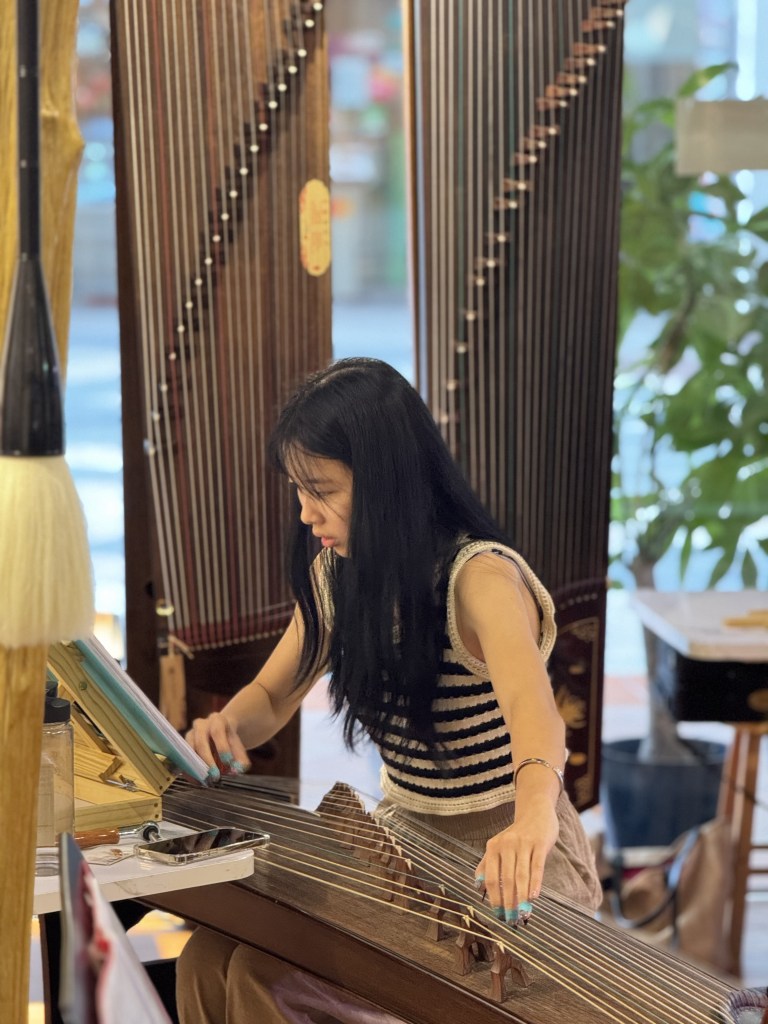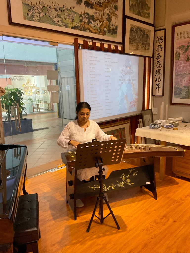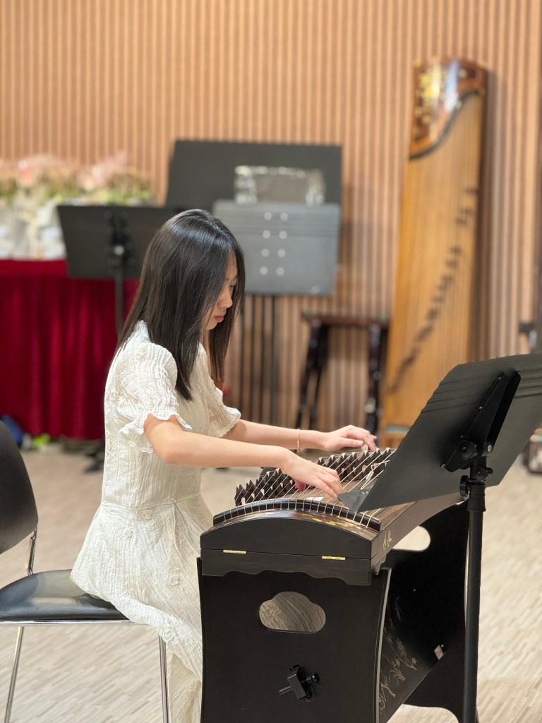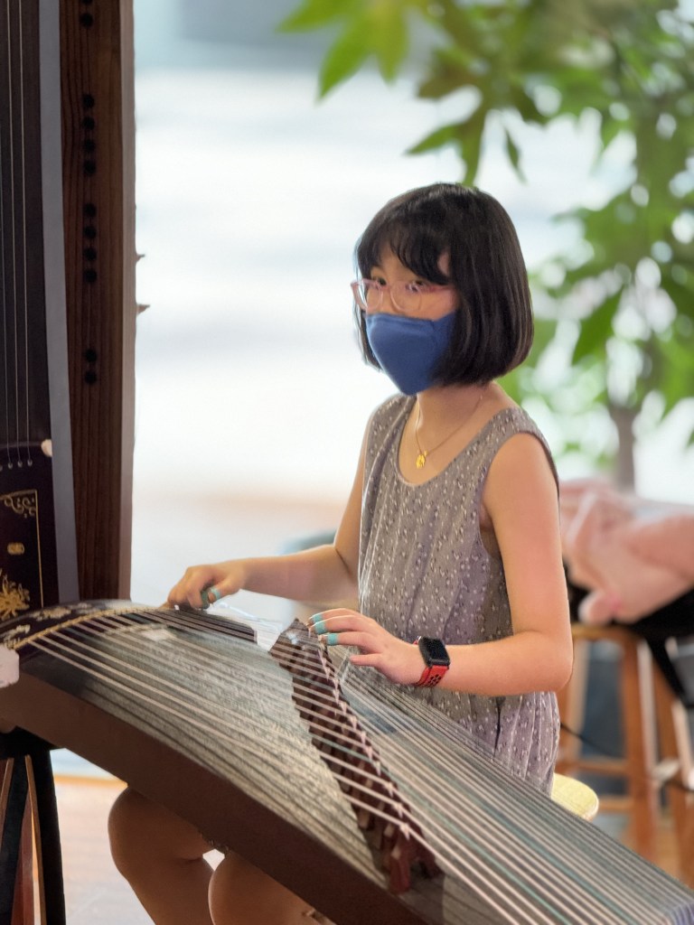 Our Guzheng Artist Madeleine playing for an event opening performance at Haw Par Villa.