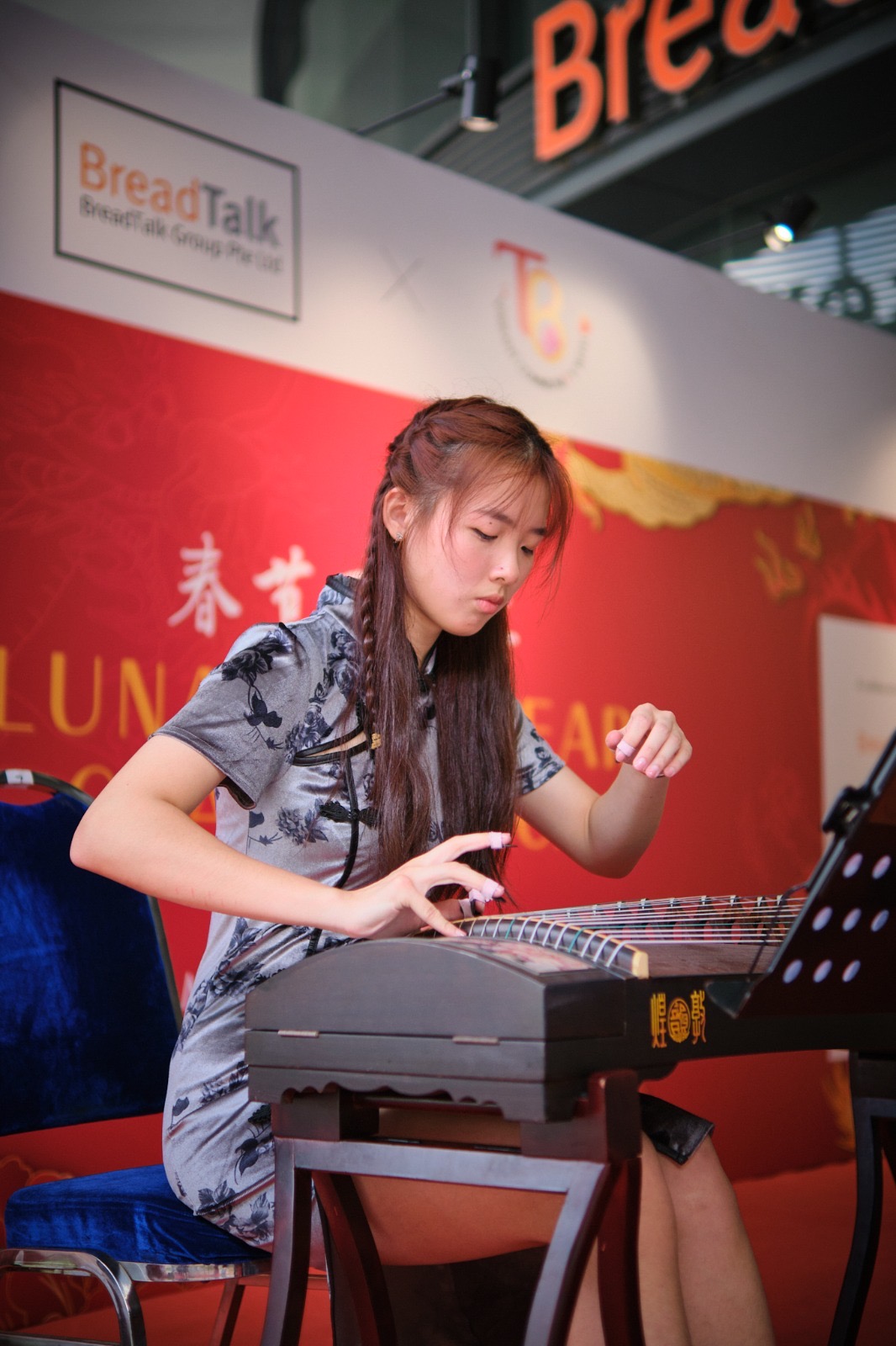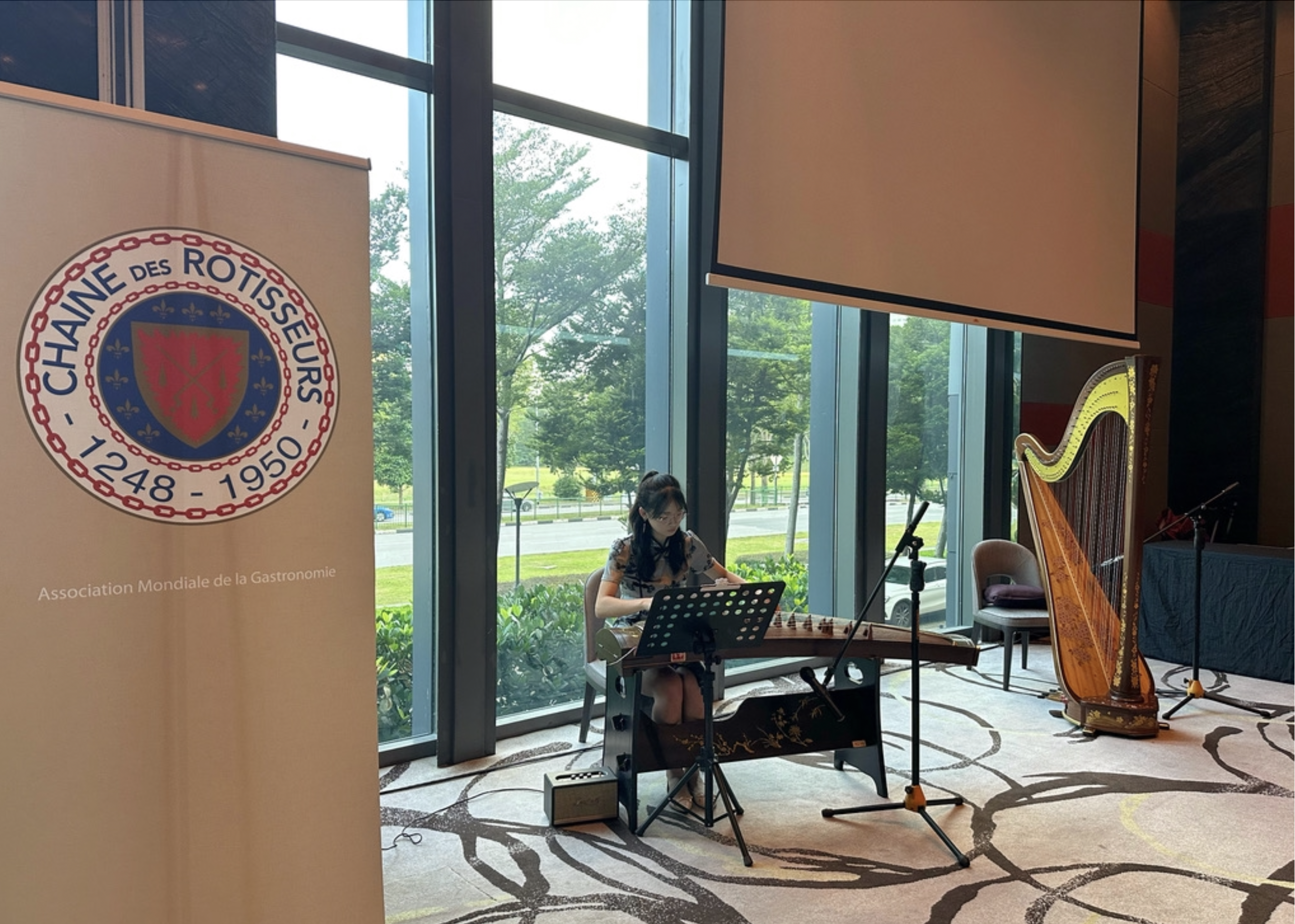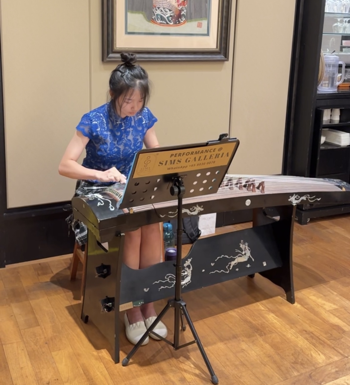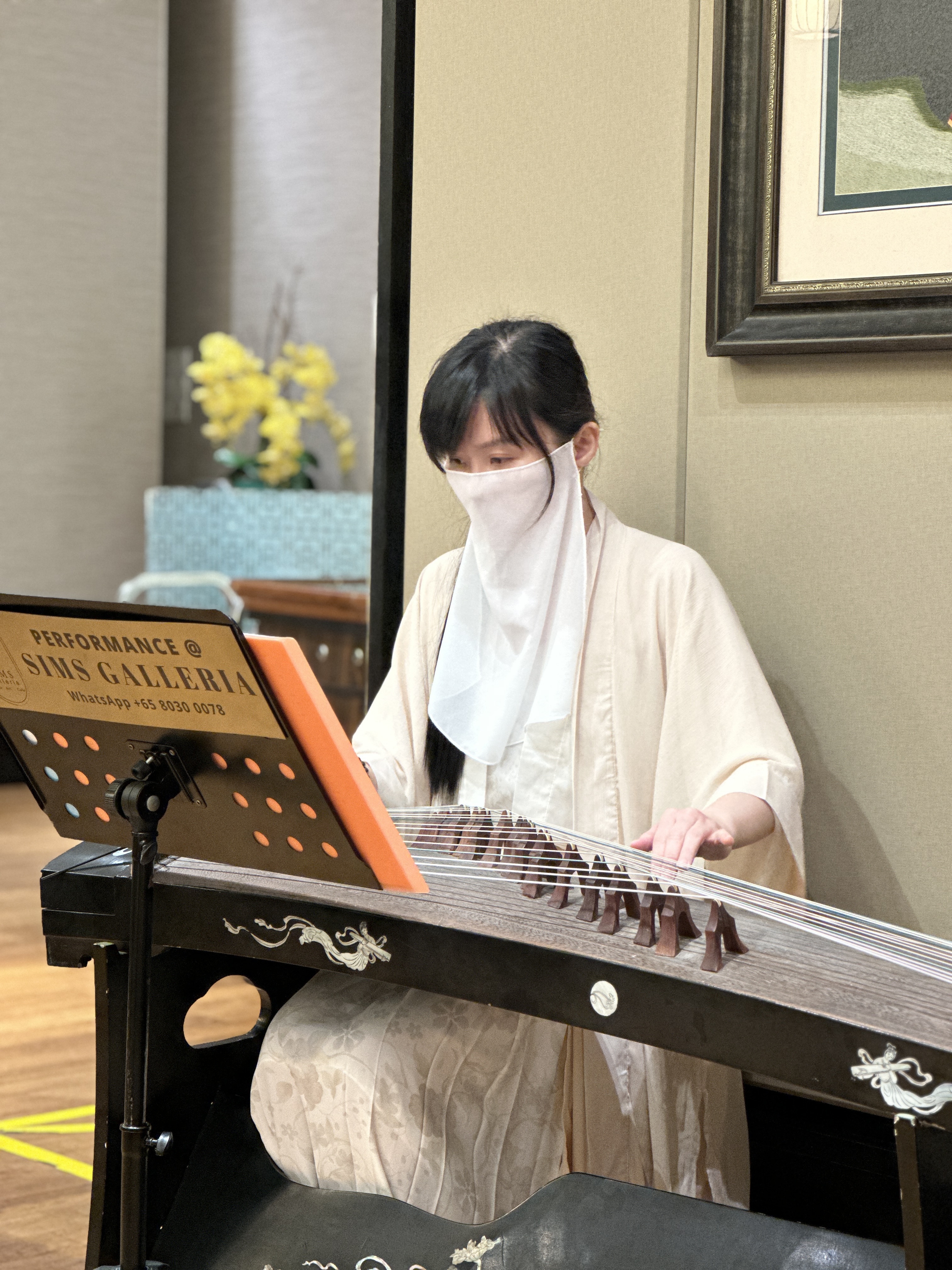 Our Guzheng Artist Madeleine playing for an event opening performance at Haw Par Villa.