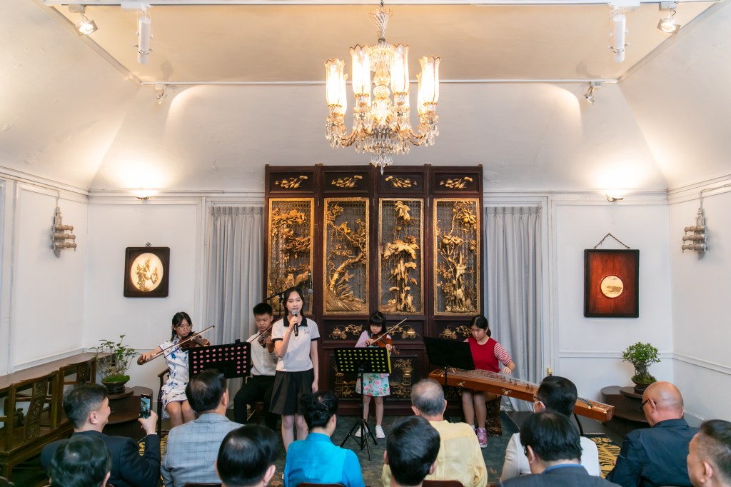 26 Oct 2023 marks the significant MOU signing ceremony between the Teochew Poit Ip Huey Kuan and Temenggong Artists-In-Residence, with our esteemed Special Guest and First Lady, Ms Jane Ittogi, as our witness. Sims Youth Ensemble was invited by the Teochew Poit Ip Huay Kuan to perform two sets of Teochew Nursery Rhymes to guests for the evening.